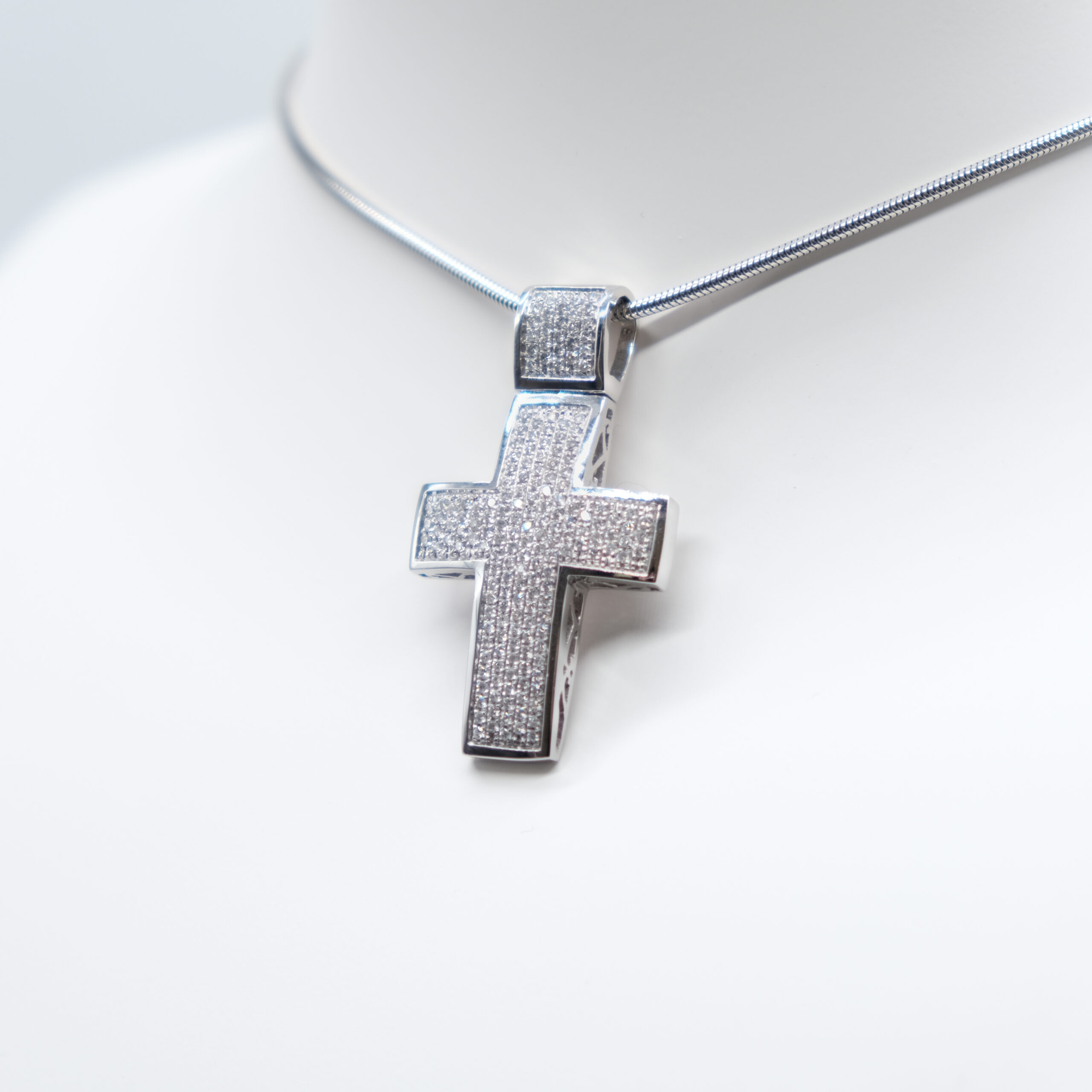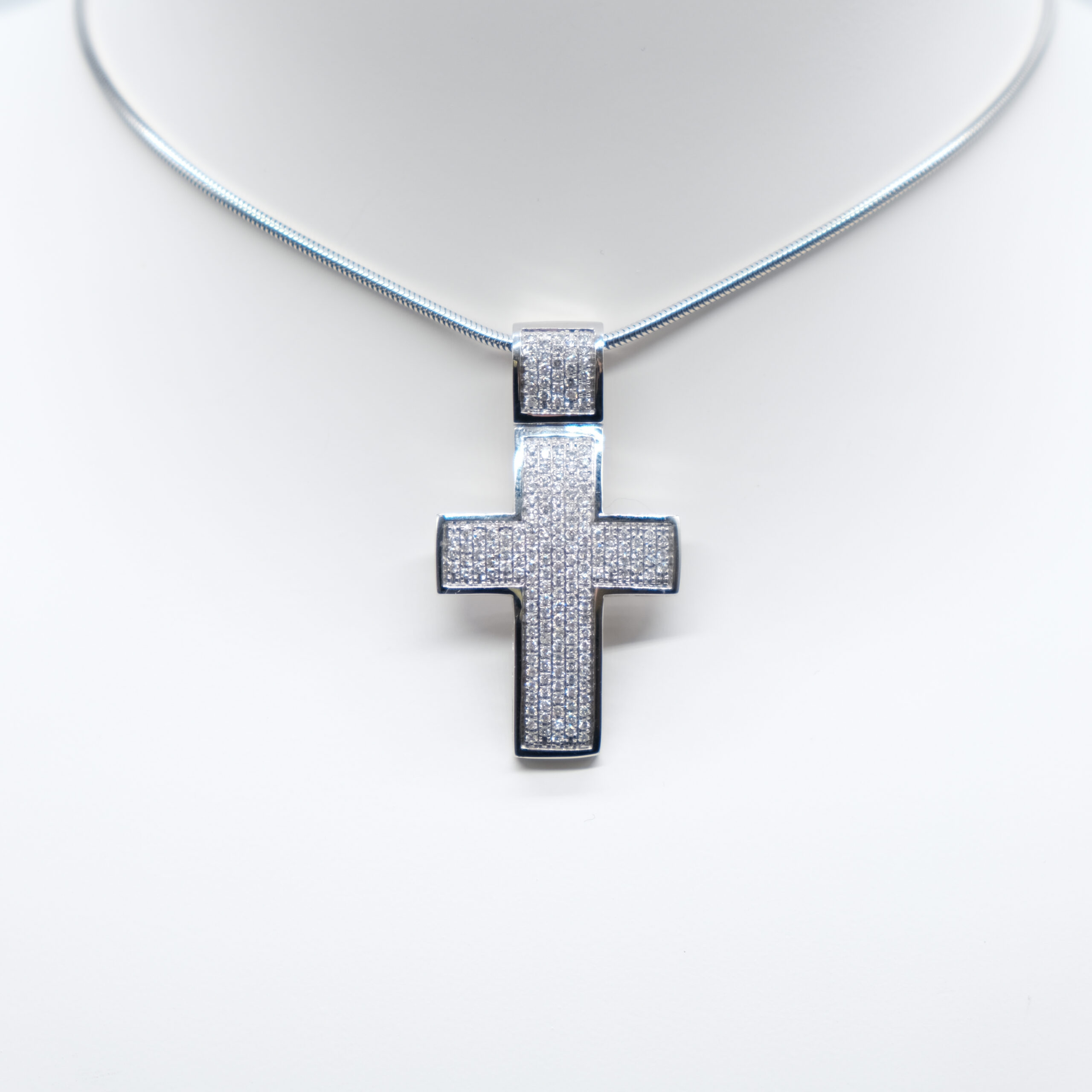 Diese Kette mit Kreuz aus 585 Gold ist ein hochwertiges Unikat, welches vorderseitig mit Brillanten (1,8kt) besetzt ist.